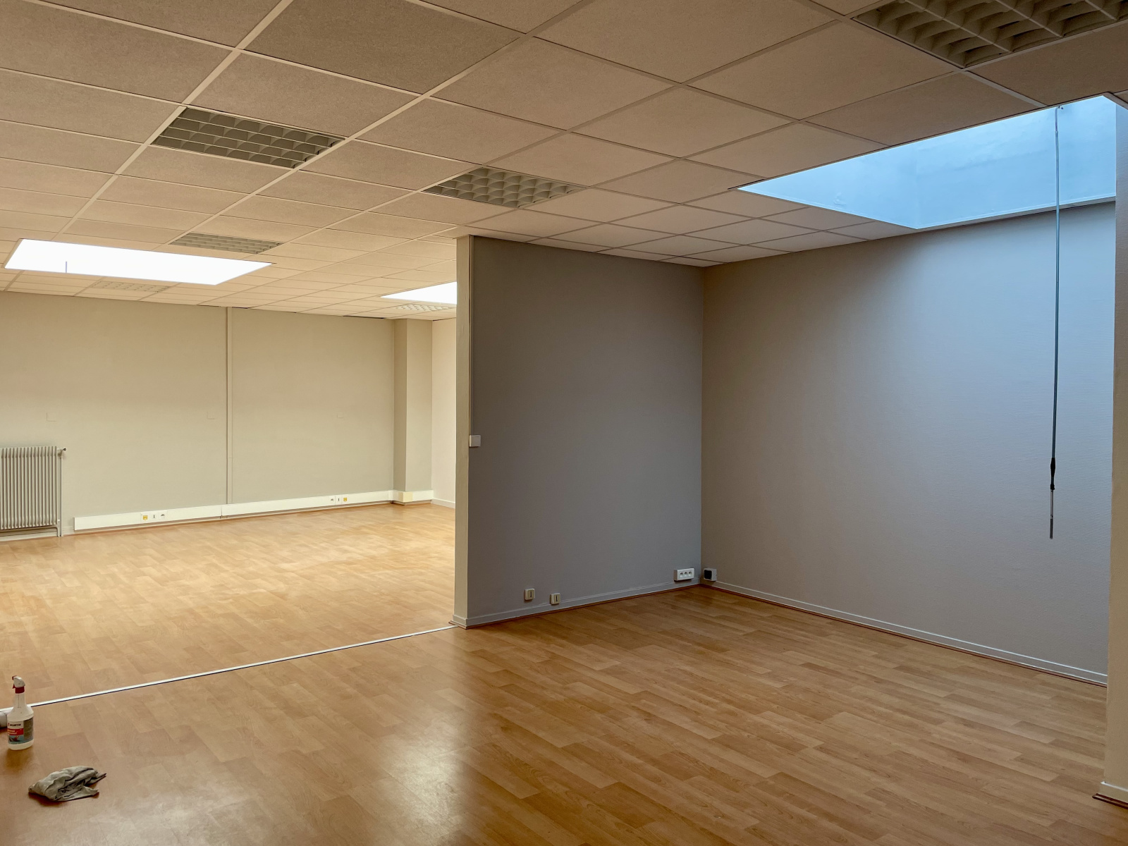 Bureaux à louer type open space + bureau indépendant de 12 m², une cuisine fermée + 2 WC indépendants (H/F).